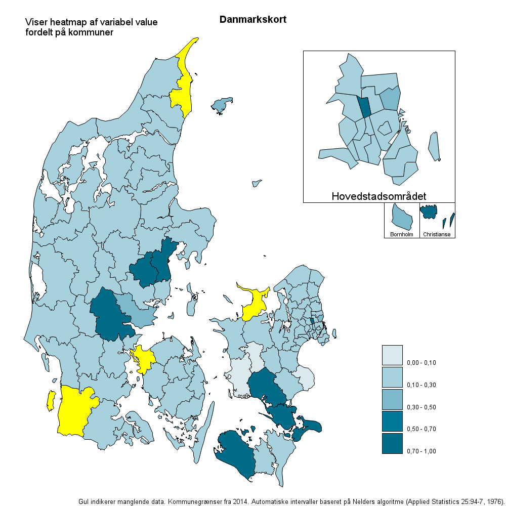 Below is a section where a heatmap of Denmark and its municipalities is created in SAS. This program can be modified to feature other countries and regions. Several interesting functions have been added to the program, allowing for customization and enhancement: